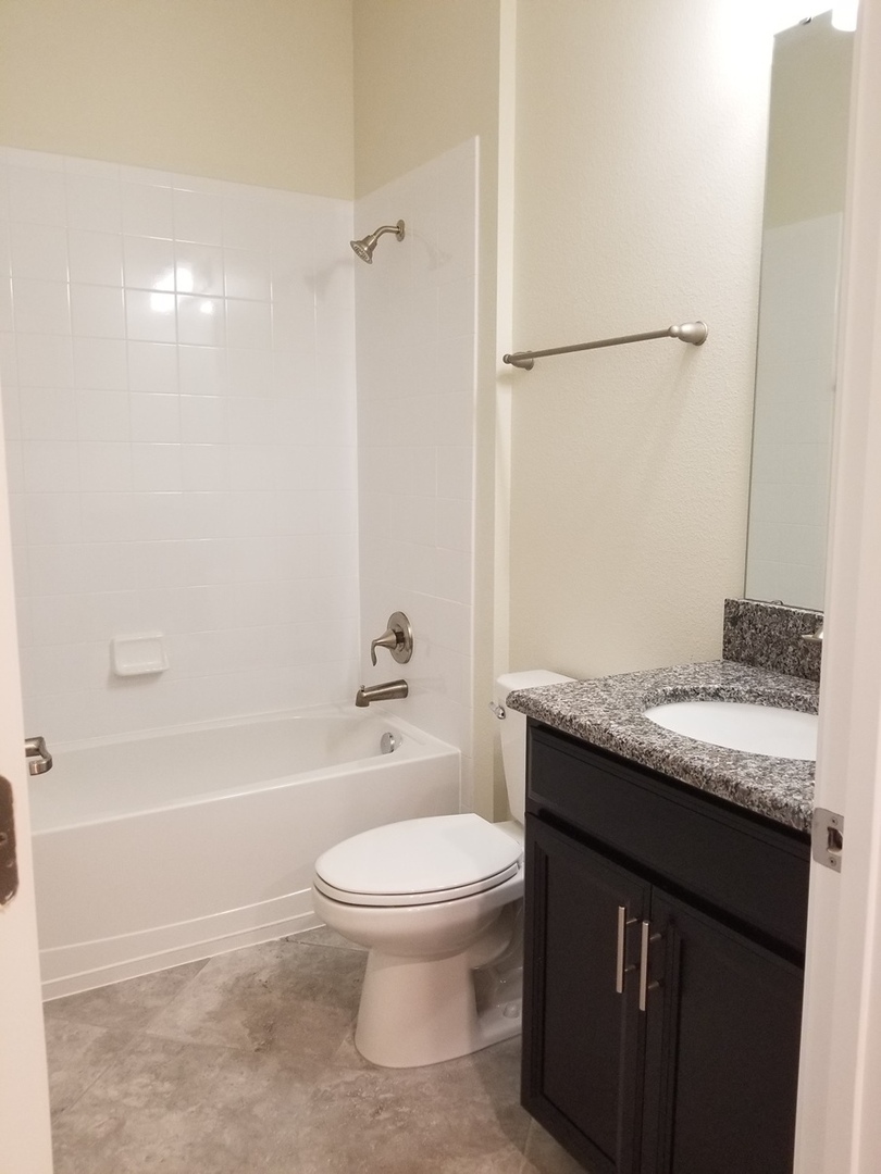The kitchen overlooks the living and dining rooms and offers granite countertops, a tiled backsplash, dark cabinetry, and upgraded stainless steel appliances. The large primary bedroom features a tray ceiling and an expansive walk-in closet. The oversized primary bathroom includes an extended dual-sink vanity, garden tub, large tiled walk-in shower, and a separate water closet.